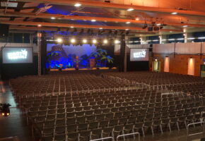 Eine Konferenz, eine Tagung oder ein Kongress? Bis zu 2.500 Gäste (unbestuhlt) können Sie in die Europahalle problemlos einladen. Bestuhlung, Bühne, Rednerpult und Konferenztische lassen sich entfernen, sodass sich ein 1.485 qm großer Innenraum ergibt. Dieser lässt sich ideal in verschieden große Messestandflächen parzellieren. Planen Sie eine Industrieausstellung für ein Fachpublikum oder eine regionale Messe, so finden Sie in der Europahalle den geeigneten Ort mit unverwechselbarem Charakter.