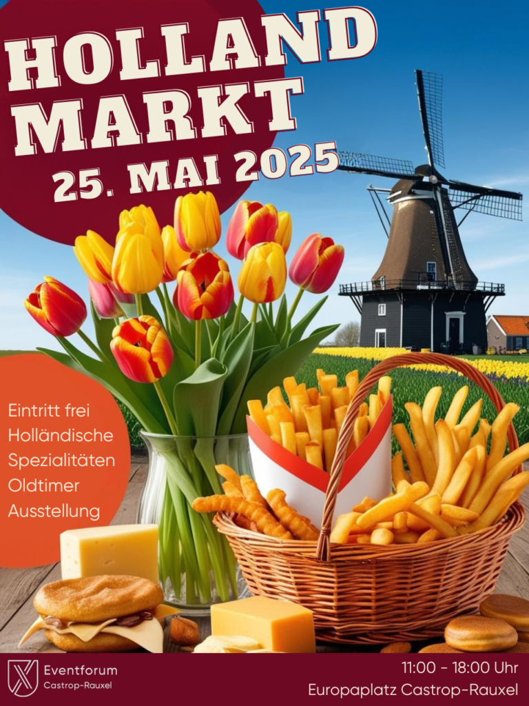 Großer Hollandmarkt mit Blasmusik!!! Genießen Sie das große Angebot an über 40 Ständen auf jeweils 6 – 20 Metern!!!